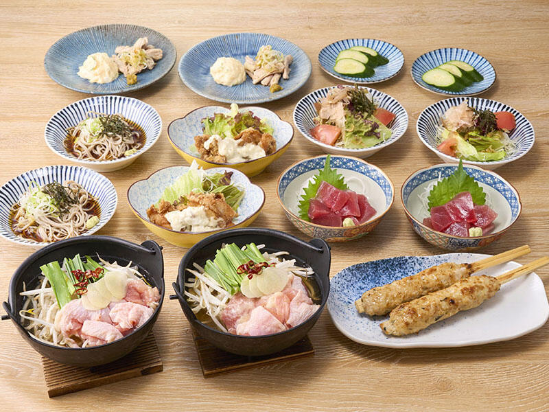 コスパ抜群!個別盛りの特製鶏醤油鍋も付いた 全9品